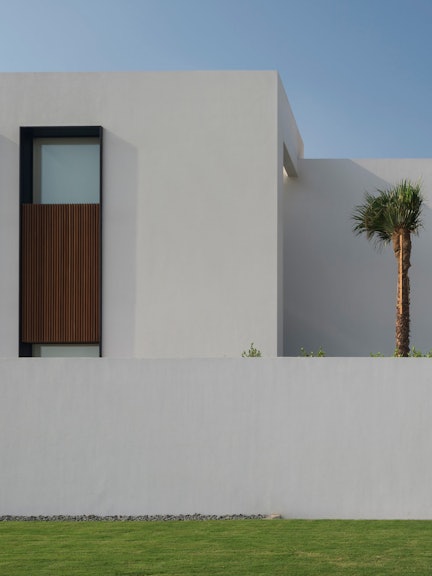 The solution was threefold and a remarkable yet welcoming home was created by mastering proportions, ensuring ample light and using natural materials. Key to this effect was the Crema d’Orcia limestone which clads the exterior, creating a light, continuous feel to the space. The same stone was used in some of the interior spaces, paired with solid wood and vast expanses of glass, designed to fill the space with light. As Rania Hamed, the creative mind behind the project says, “Light is one of the greatest luxuries in interiors”.