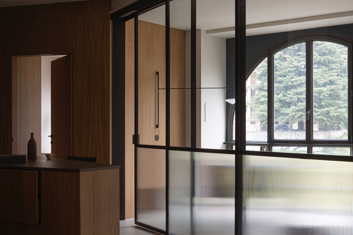 The large arched windows frame the vine-covered hills beyond and look out over one of Brescia’s most important roads. You feel as though you are totally immersed in a natural context, and that is what makes this design different from traditional loft concepts.